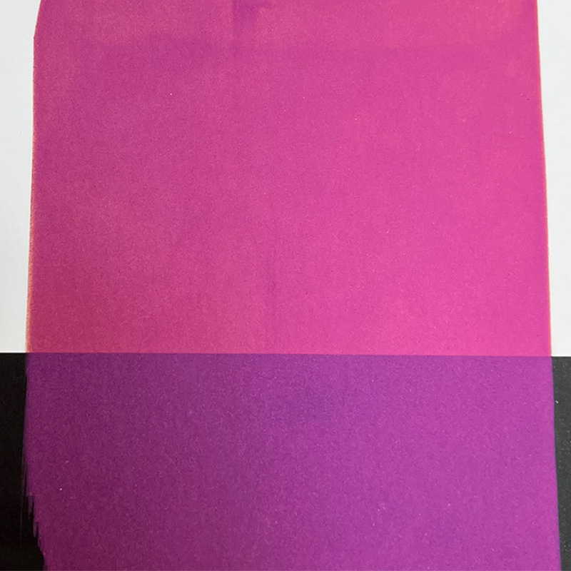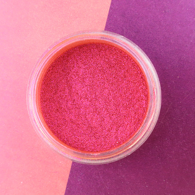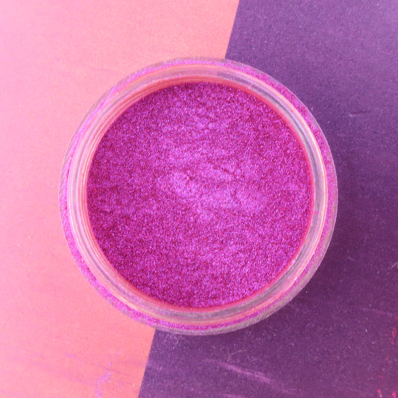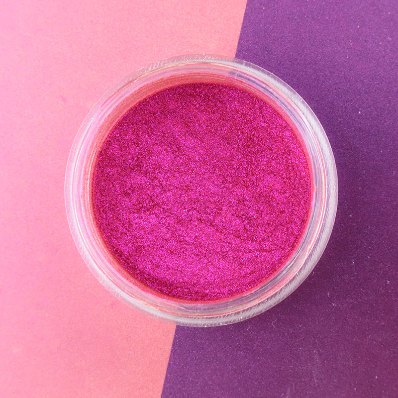 Magenta Pearlescent Pigments обычно состоят из крошечных перламудных частиц, которые диспергируются в пигменте, образуя уникальный эффект блеска. Структура перламусных частиц является относительно хрупкой, а сильная вибрация и шок могут привести к разрыву или агрегации частиц, тем самым влияя на блеск и однородность пигмента.